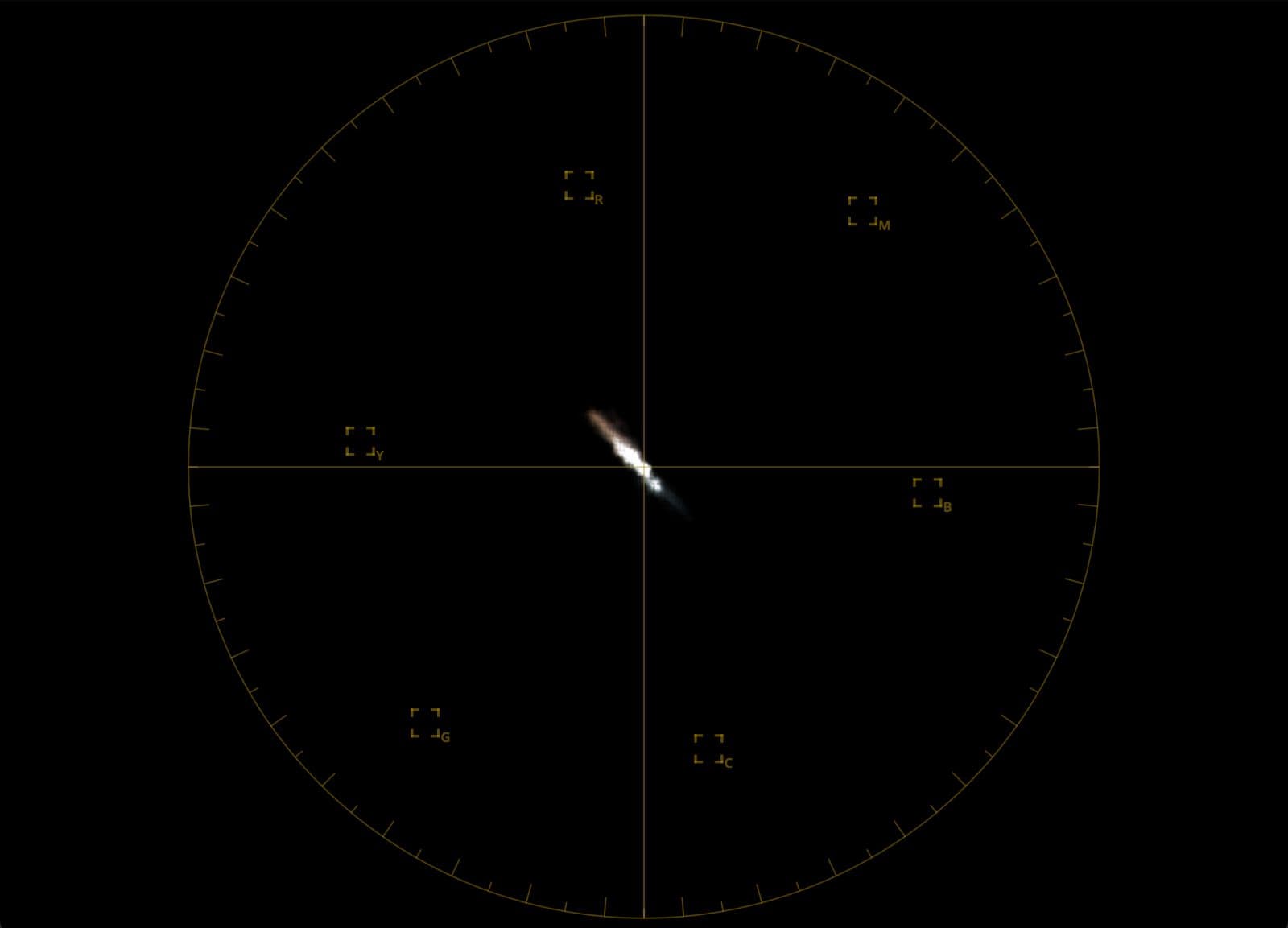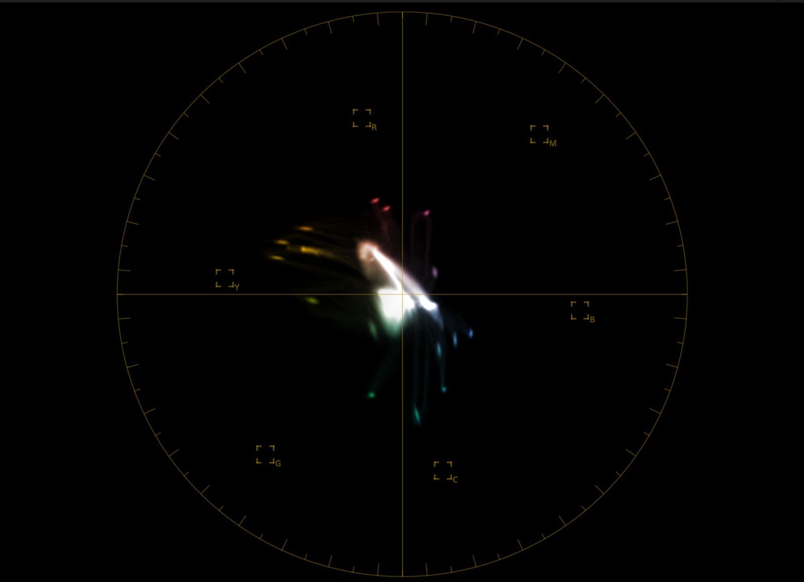 *If you’ve never seen a vectorscope - It’s a graph that maps the color information of an image in terms of hue and saturation. The center represents neutral tones (black, white, and gray), while the outer edges indicate highly saturated colors. The direction corresponds to specific hues (e.g., red at the 3 o’clock position, cyan at 9 o’clock), and the distance from the center shows saturation intensity.